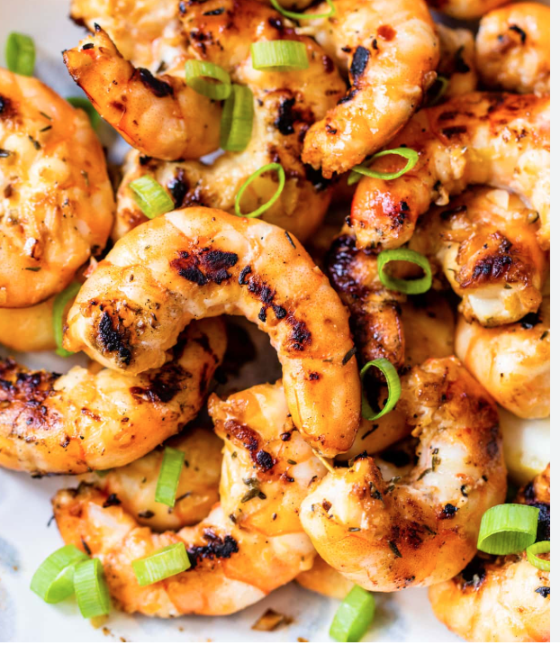Grilled shrimp served with a smooth lightly seasoned ginger carrot mash and crisp lemon pepper green beans