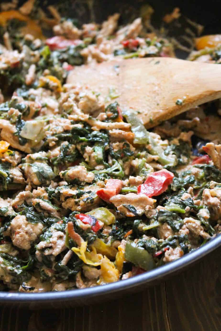 Spinach Ground Turkey with Sweet Potato Mash